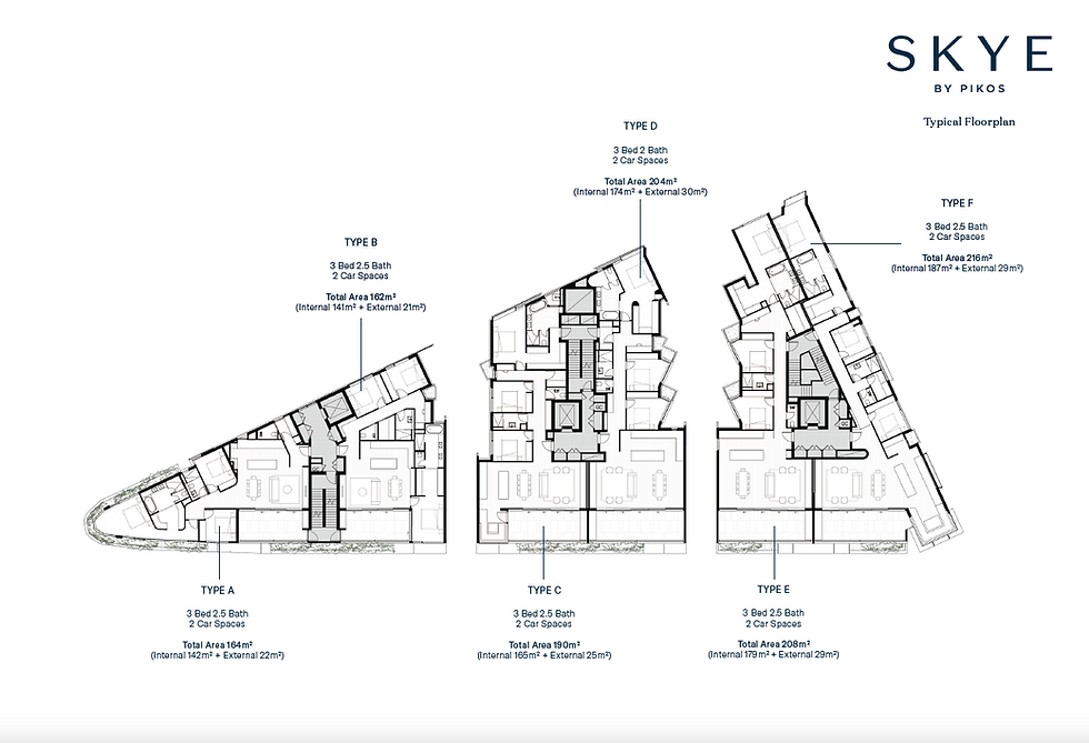 All 3 bedroom, 2-2.5 bathroom, minimum 2 car spaces. Some have up to 4 car spaces allocated!